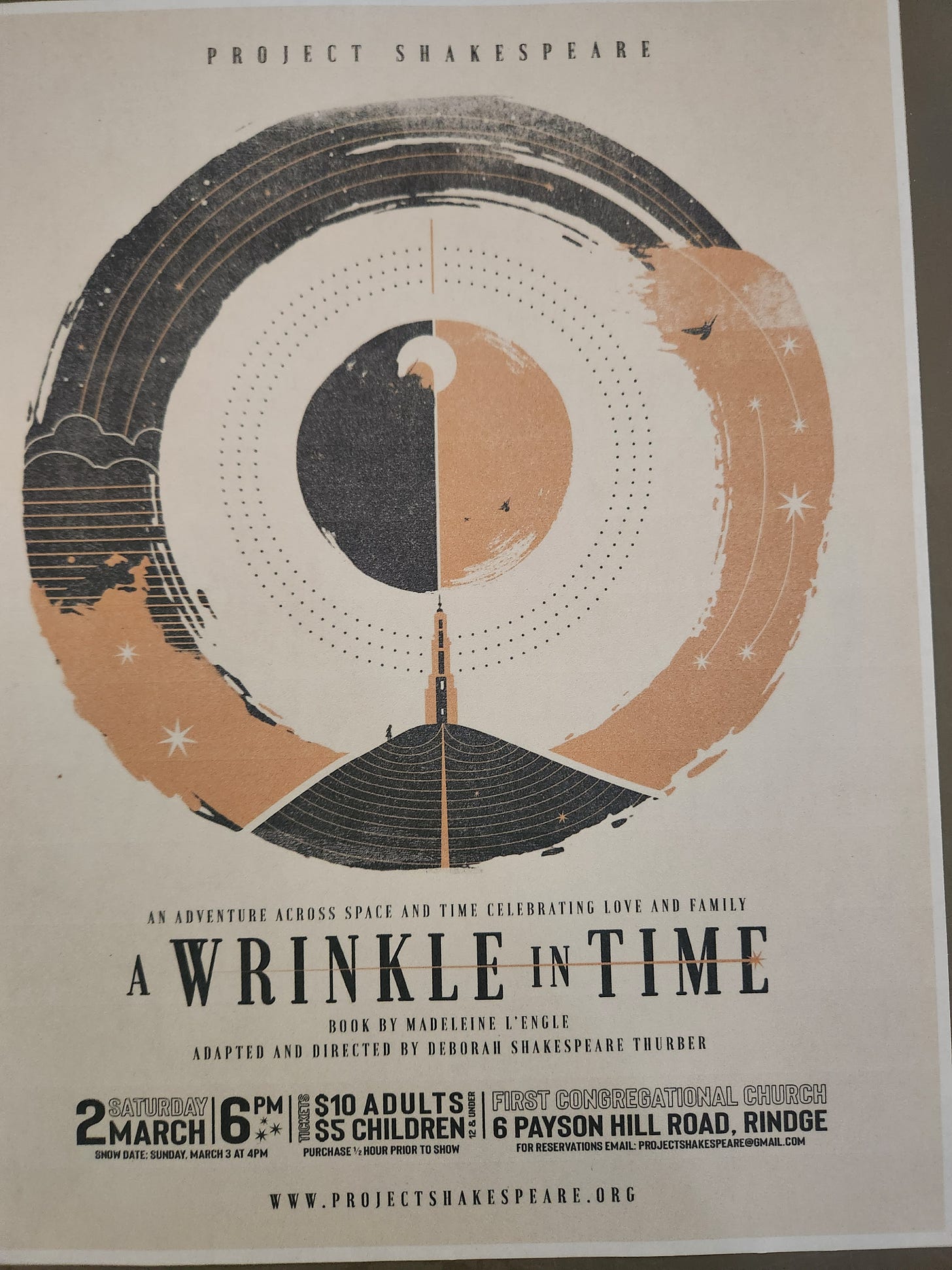 If you are a fan of local theater Project Shakespeare is putting on their adaptation of A Wrinkle in time by Madeleine L’Engle. One of the Ashby’s own is staring in the production.